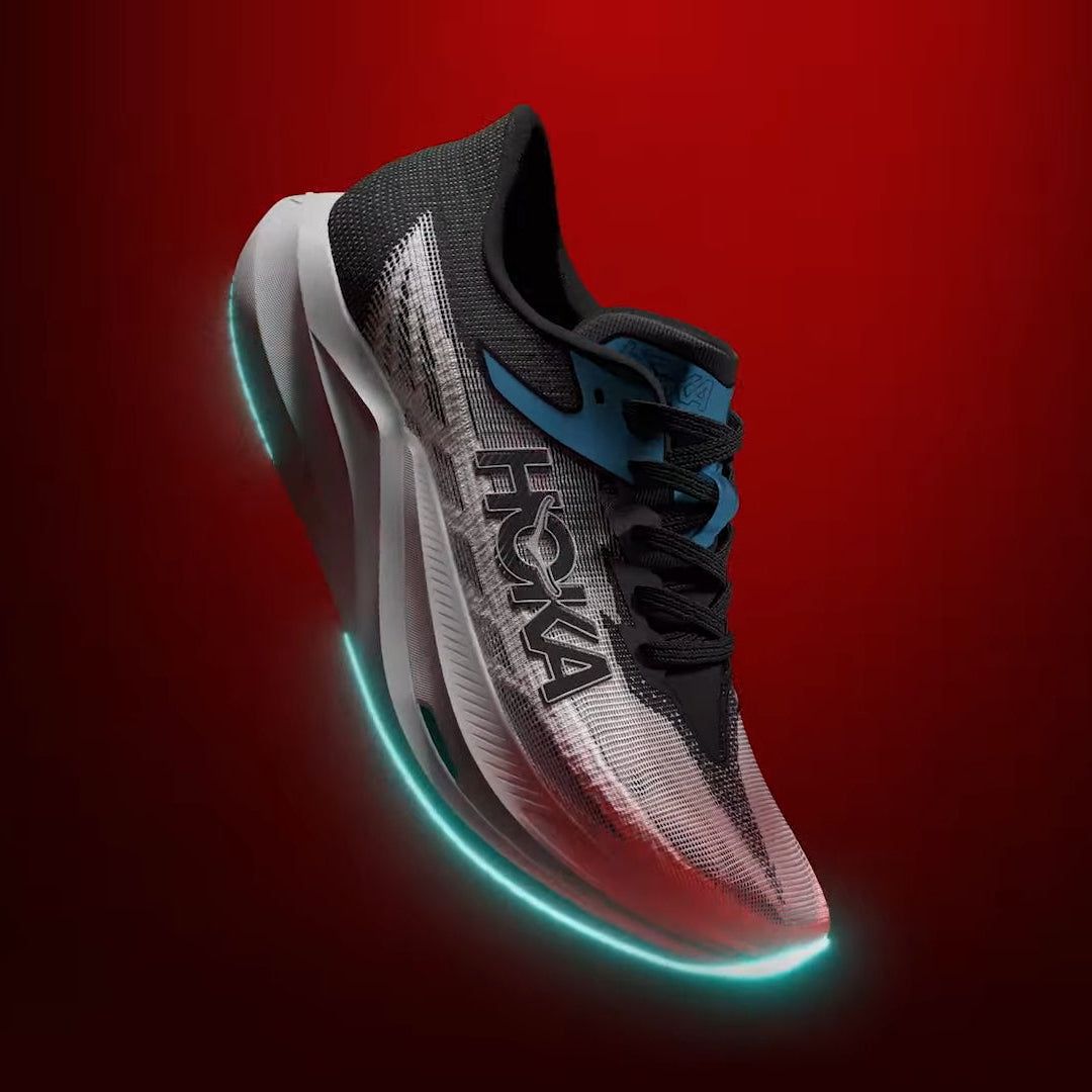 Eine Gruppe von 5 Läuferinnen und Läufern schräg von oben läuft im Sonnenlicht durch einen Säulengang