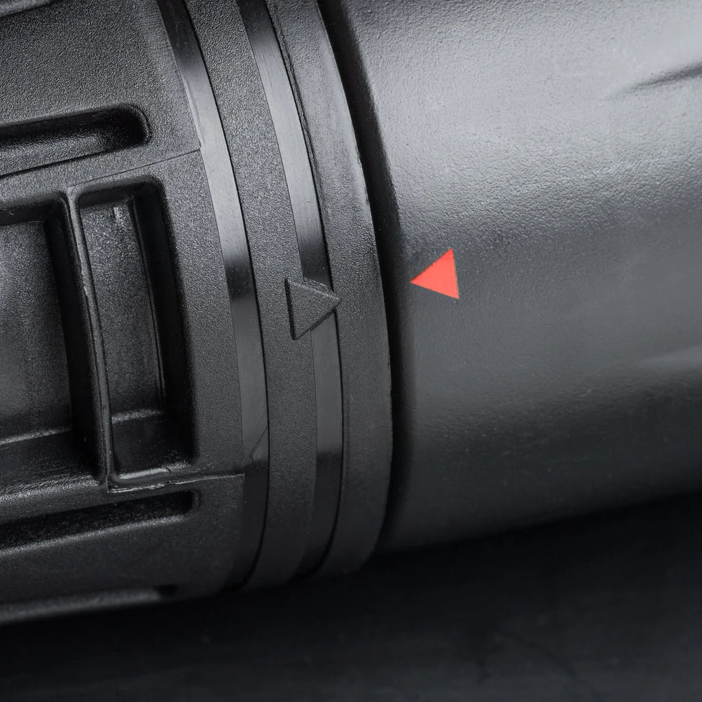 Die Halterung hat eine leicht abgesenkte 'V'-Form, um sie zwischen den Extensions zu zentrieren und das Risiko zu reduzieren, dass die Flasche mit schmalen Armlehnenpositionen kollidiert. Die Halterung ermöglicht eine 40mm-Spannweite in der Abstandseinstellung der Extensions.