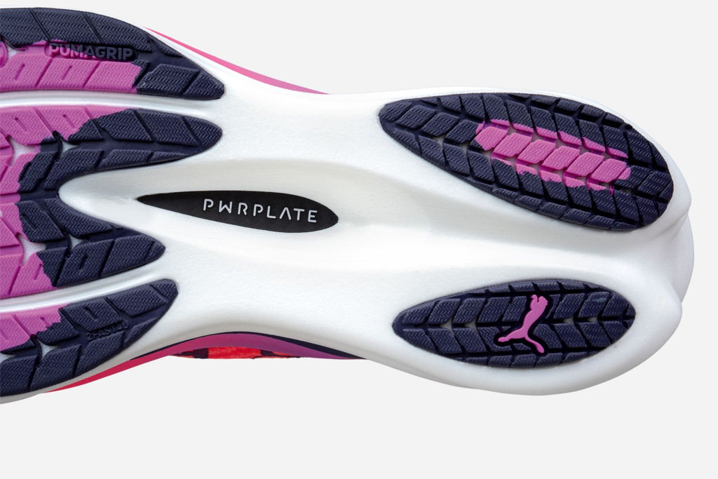 Die innovative PWRPLATE aus Carbonfaser sorgt für kraftvollen Vortrieb bei gleichzeitig hoher Flexibilität und macht den Schuh ideal für temporeiche Trainingseinheiten.