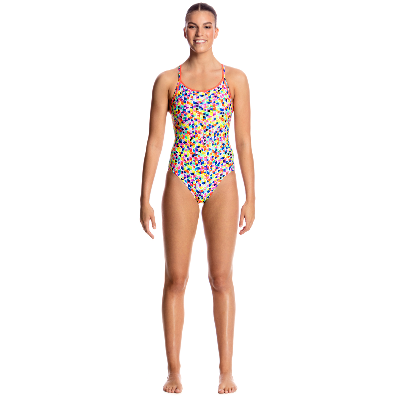 Der Diamond Back ist der klassische Trainingsbadeanzug von Funkita für Damen. Das Model hat verstärkte Träger, einen verkleinerten Rückenausschnitt und das Bein ist normal hoch geschnitten, für deine perfekte Trainingseinheit im Wasser. Damit auch nichts rausblitz hat der Badeanzug ein zusätzliches Futter im Frontbereich.