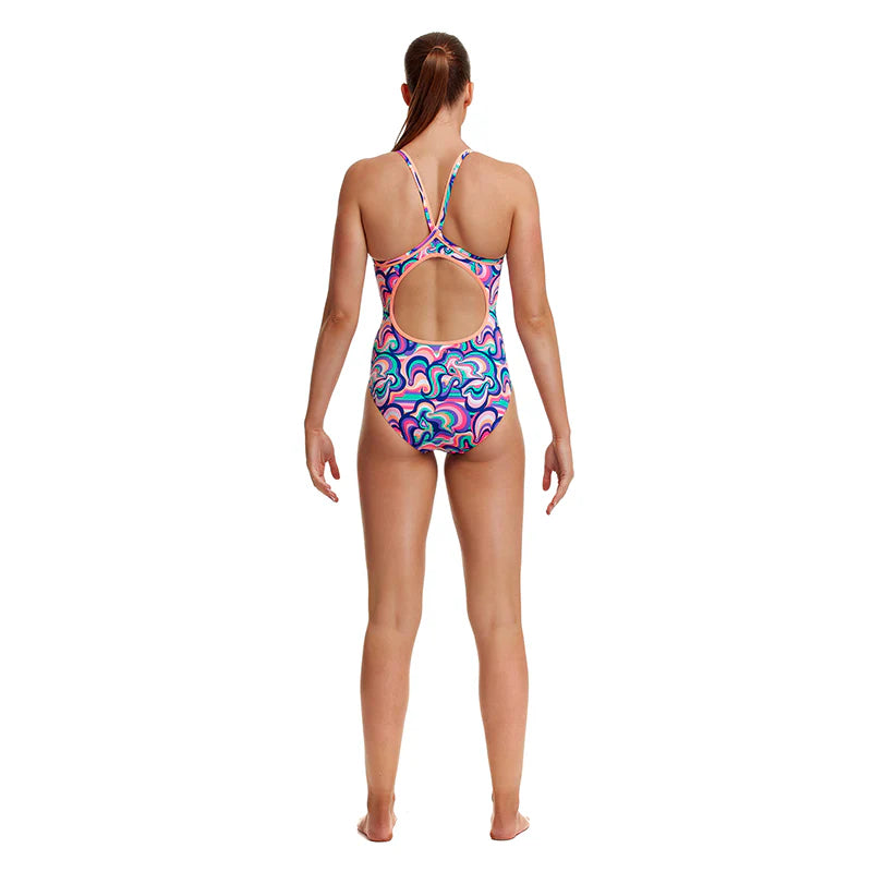 Der Diamond Back ist der klassische Trainingsbadeanzug von Funkita für Damen. Das Model hat verstärkte Träger, einen verkleinerten Rückenausschnitt und das Bein ist normal hoch geschnitten, für deine perfekte Trainingseinheit im Wasser. Damit auch nichts rausblitz hat der Badeanzug ein zusätzliches Futter im Frontbereich.